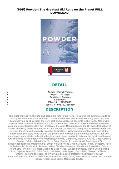 Powder The Greatest Ski Runs On The Planet Epub By Patrick Thorne